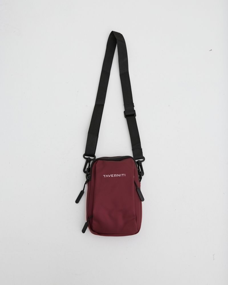 Bolso porta celular de PU con logo Taverniti estampado en gris plata