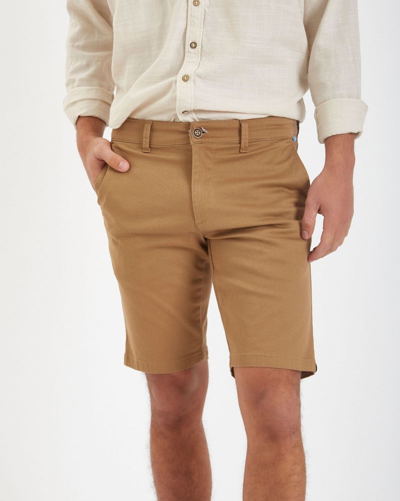 Bermuda de garbardina corte chino, tiro intermedio y calce slim con pinza en trasero. • Elastizado • 98 % algodón - 2 % elastano