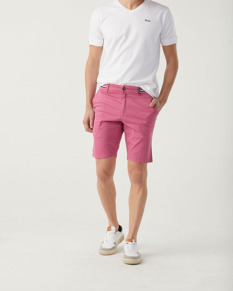 Bermuda de garbardina corte chino, tiro intermedio y calce chupin con pinza en trasero y con bordado en la bota pierna izquierda delantera. Línea Energy • Elas