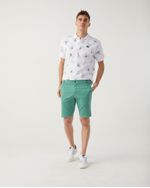 Bermuda de garbardina corte chino, tiro intermedio y calce chupin con pinza en trasero y con bordado en la bota pierna izquierda delantera. Línea Energy • Elas