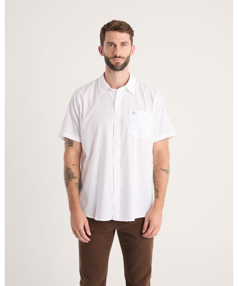 CAMISA MANGA CORTA DE SIMIL LINO GASPEADO CON BOLSILLO, 85% ALGODON 15% LINO