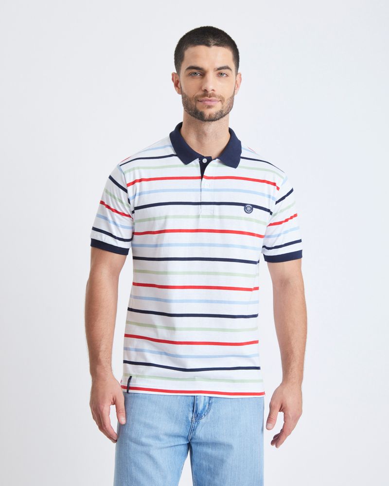 Chomba rayada en suave jersey de algodón. Calce regular fit y manga corta con puños que permiten un excelente ajuste. Presenta un cuello polo en un tejido de algodón con botones al tono. Lleva una grifa de la marca en el pecho. Composición 100% algodón.