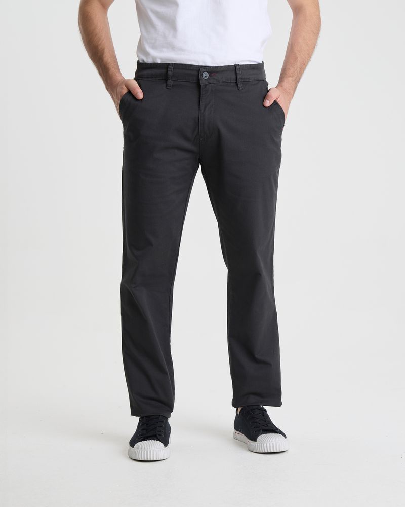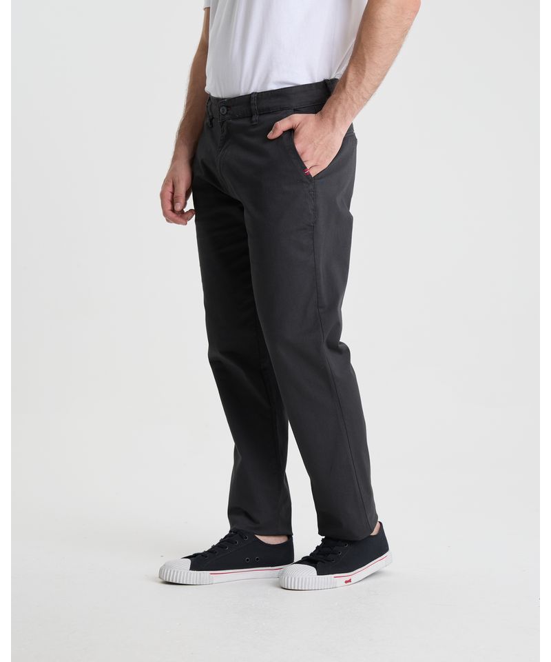 Pantalón de gabardina corte chino, tiro intermedio y calce slim con pinza en trasero. Elastizado 98 % algodón 2 % elastano