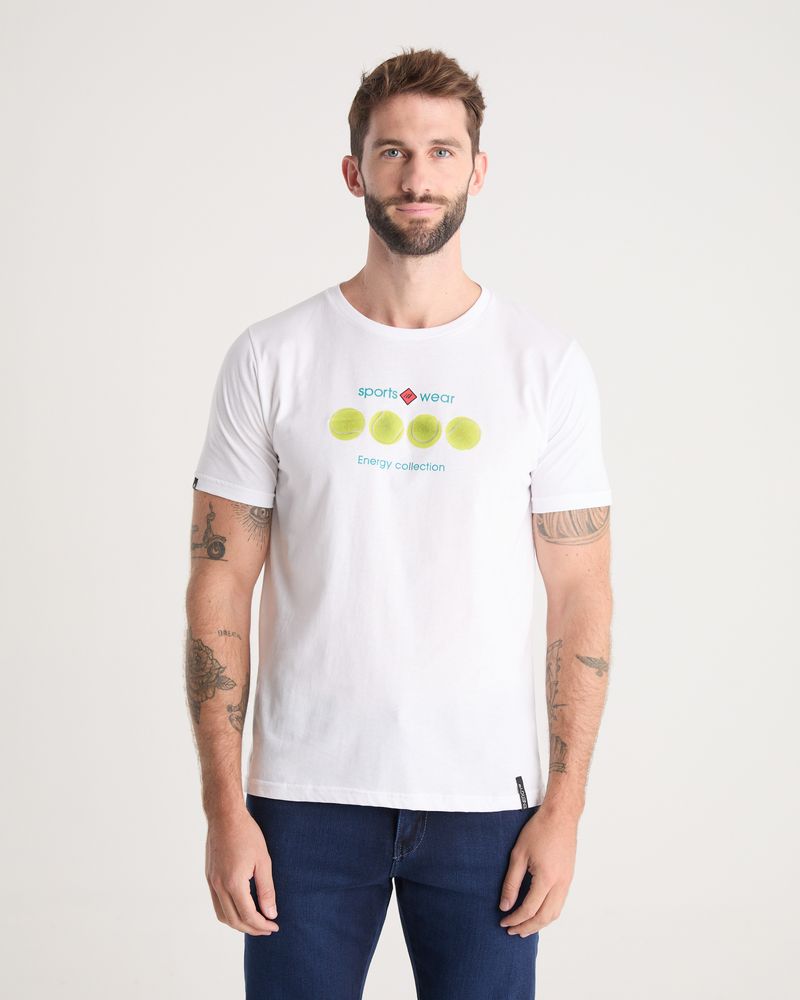 Remera estampada de jersey de algodón liviano de estilo urbano deportivo. De calce regular fit, manga corta y escote redondo con cuello en tejido elastizado. Composición: 100% algodón.