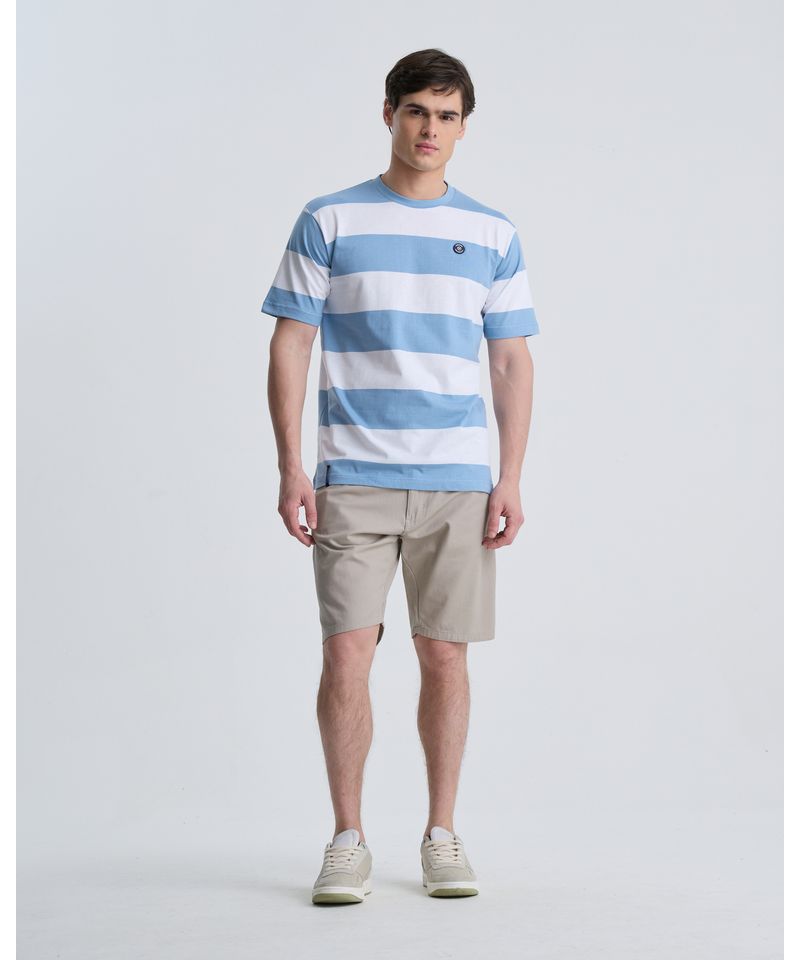 Remera rayada en suave jersey de algodón. Calce regular fit, manga corta y escote redondo con cuello en tejido elastizado. Lleva una grifa de goma en el pecho. Composición: 100% algodón.