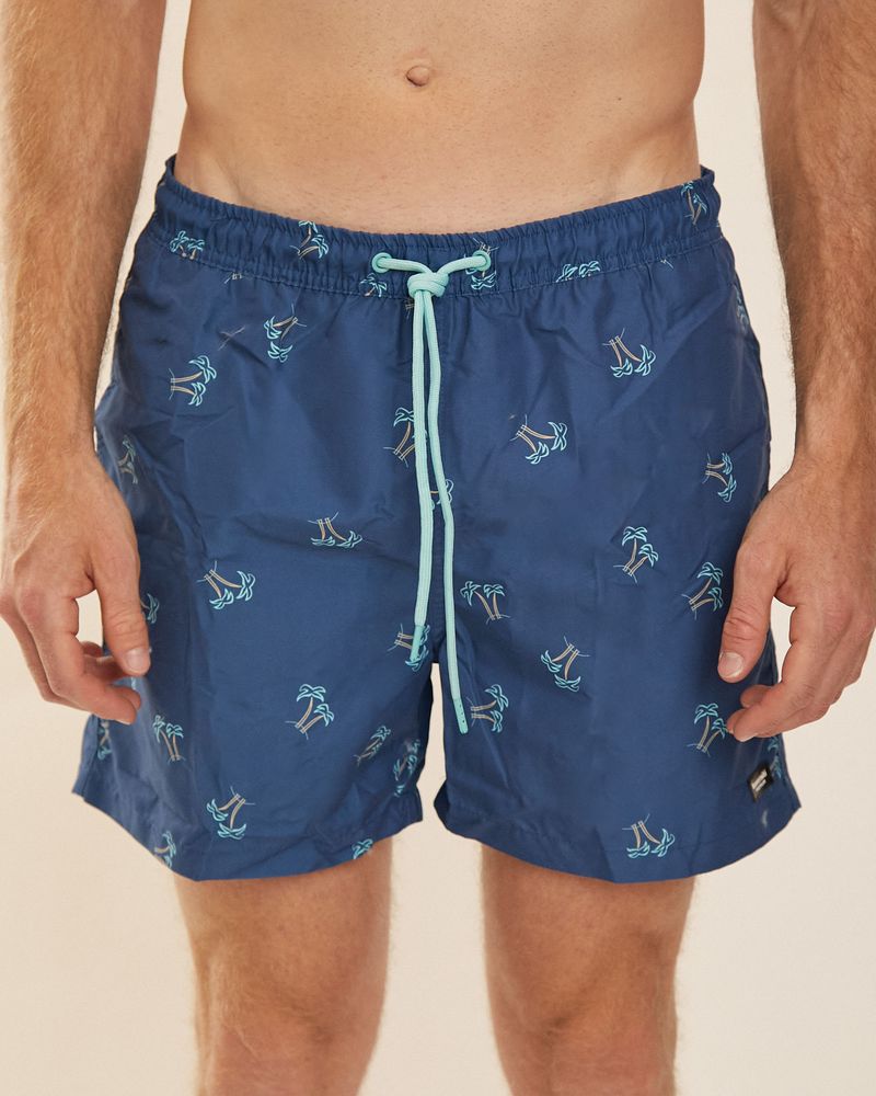 SHORT DE BAÑO ESTAMPADO CON CINTURA ELASTIZADA. COMPOSICIÓN: 100% POLIESTER