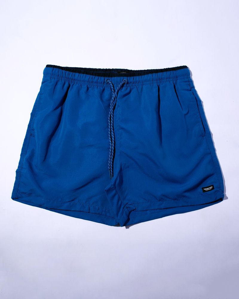 SHORT DE BAÑO LISO CON DETELLE DE COLOR EN LA CINTURA ELASTIZADA. COMPOSICIÓN: 100% POLIESTER.