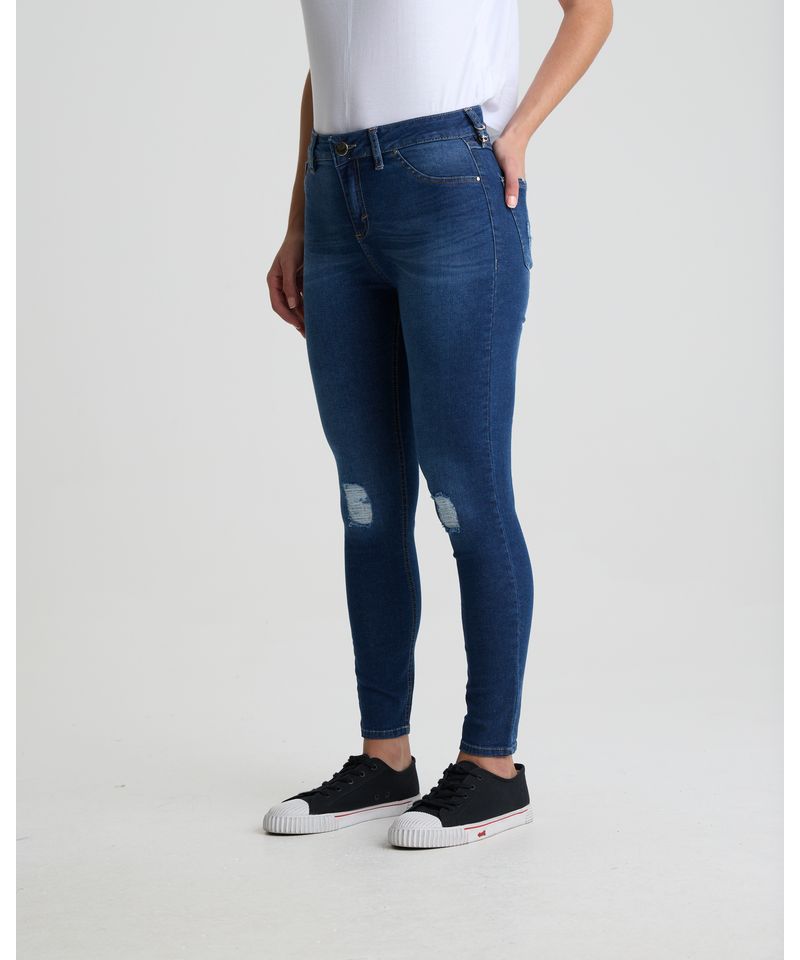 Jeans chupin tiro alto 5 bolsillos. Detalle de abertura en bota. LINEA 777 • elastizado • 99% algodón 1% elastano