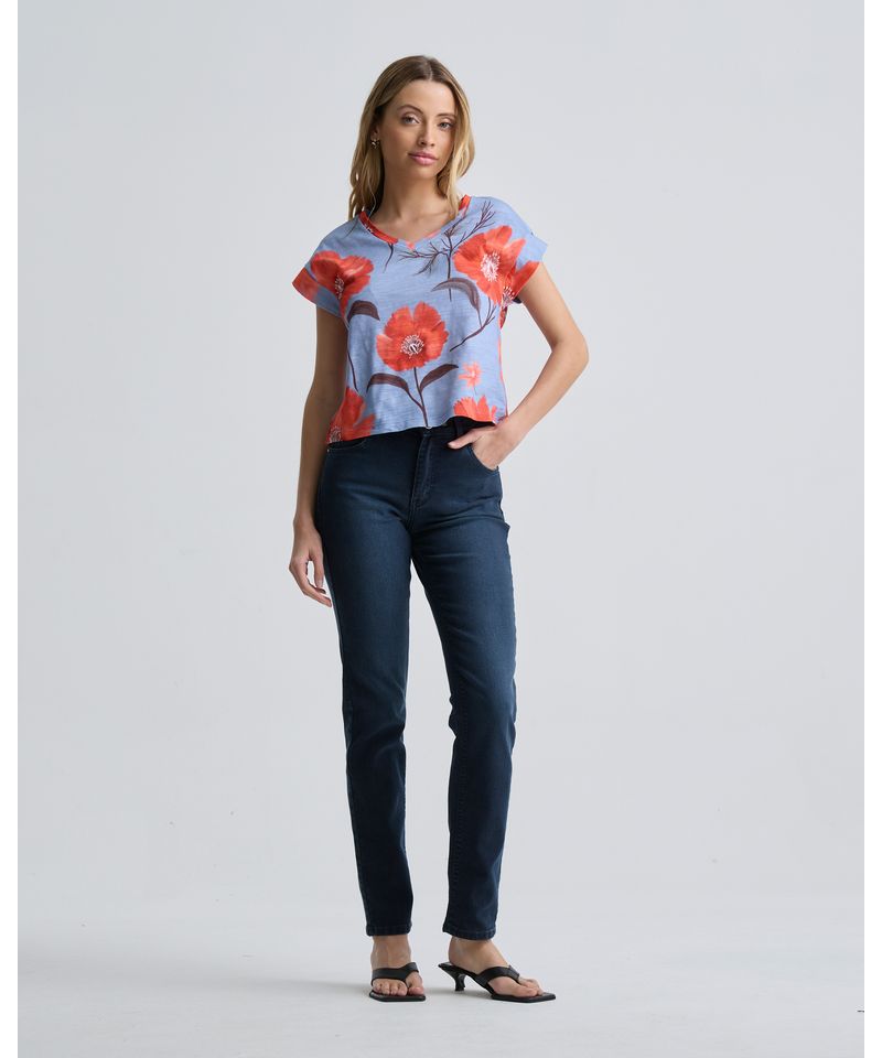 Jeans chupin tiro alto 5 bolsillos. Detalle de marca en trasero y abertura en bota. • elastizado •composicion 99% algodón - 1% elastano