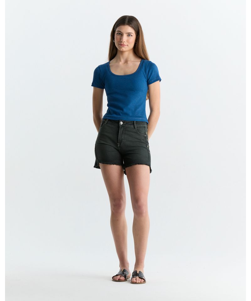 Short en denim, tiro medio. Detalle de bordado de diseño en ambos laterales de la prensa. Composición algodón 98% Elastano 2%